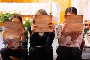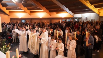 La journée étant placée sous le double sceau de la joie fraternelle et de la dynamique de l'encyclique Laudato Si, les plus jeunes sont invités, au début de la messe, à accuellir les merveilles de la création.
